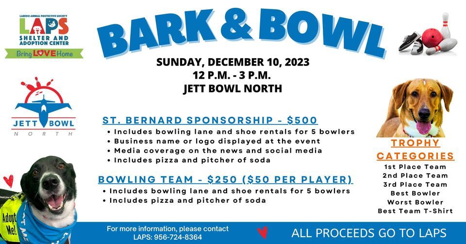 Joins us for fun filled night at the Jett Bowl. All proceeds go to LAPS. Each 5 player team includes: