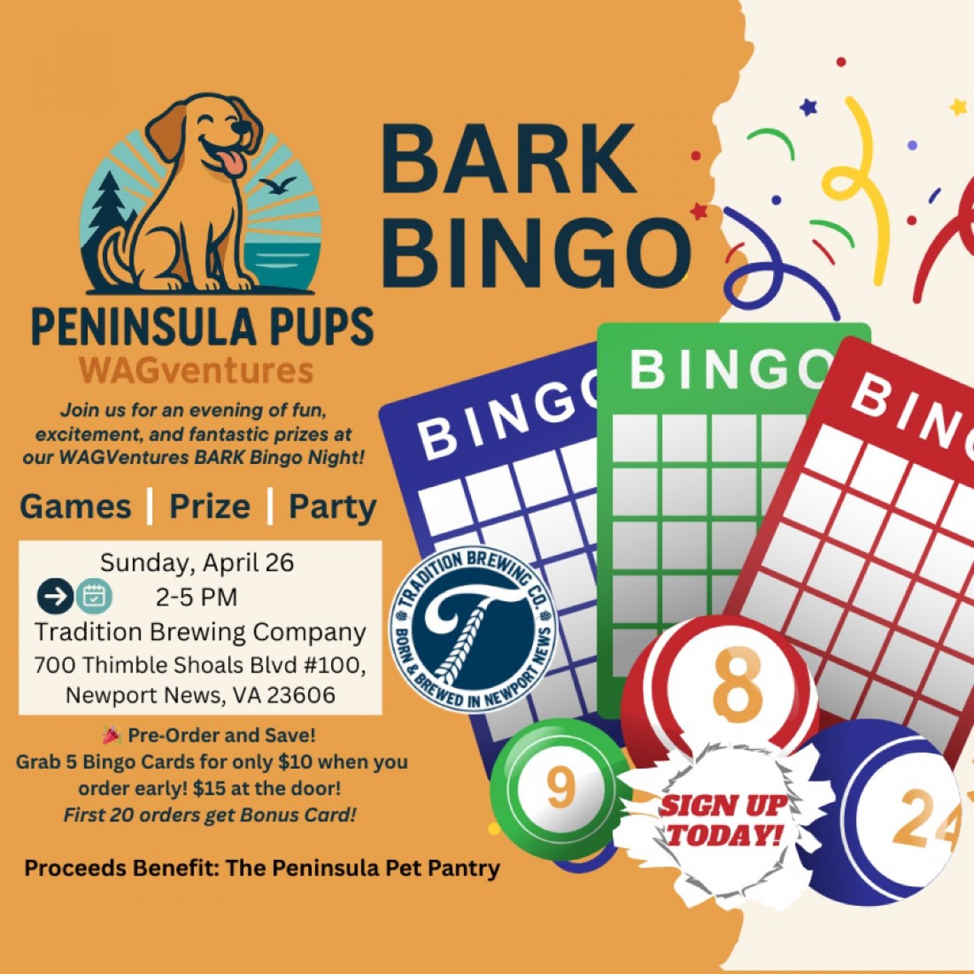 Join us for a WAGeventure Event packed with prizes, laughter, and feelâgood community spirit. Whether youâre a seasoned bingo pro or just here for the fun, every card you play directly fuels the Pantryâs mission to provide food, supplies, and hope to pets across the Virginia Peninsula.