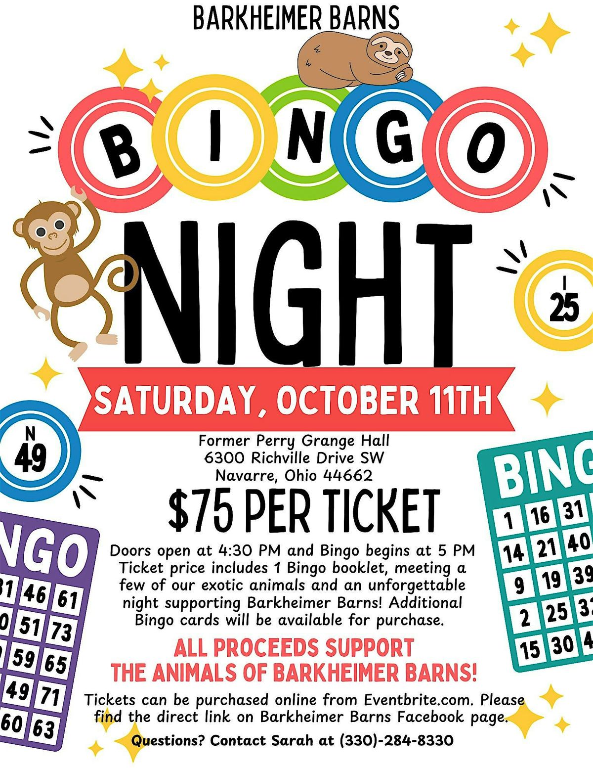 Join us for a fun-filled evening of bingo in support of the barn! Proceeds from this event will go directly toward renovations at Barkheimer Barns and the ongoing care of our beloved exotic animals. ???