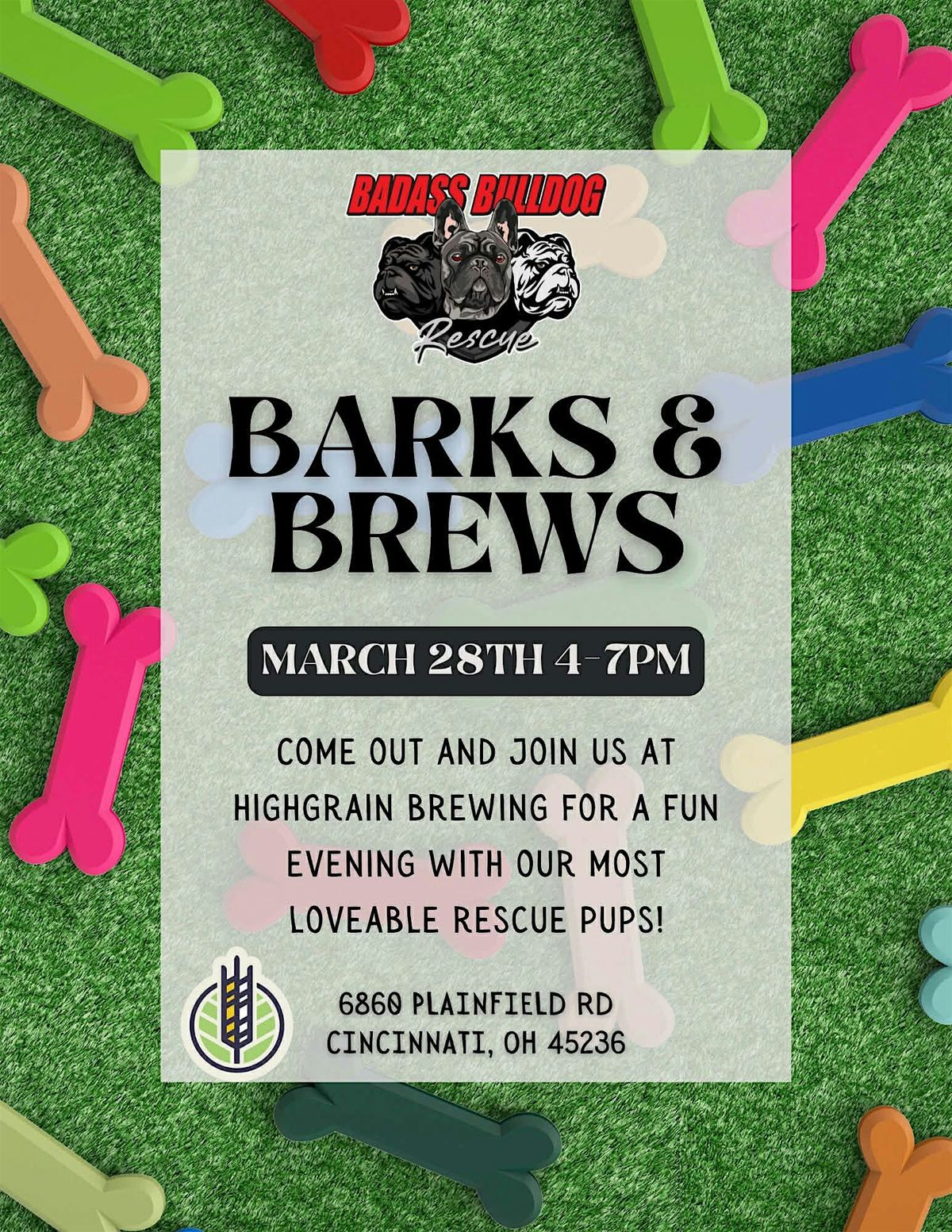 Badass Bulldog Rescue will be at Highgrain Brewing on March 28th from 4 to 7pm. Come out, grab a cold one & get some bulldog love from some adorable bulldogs!