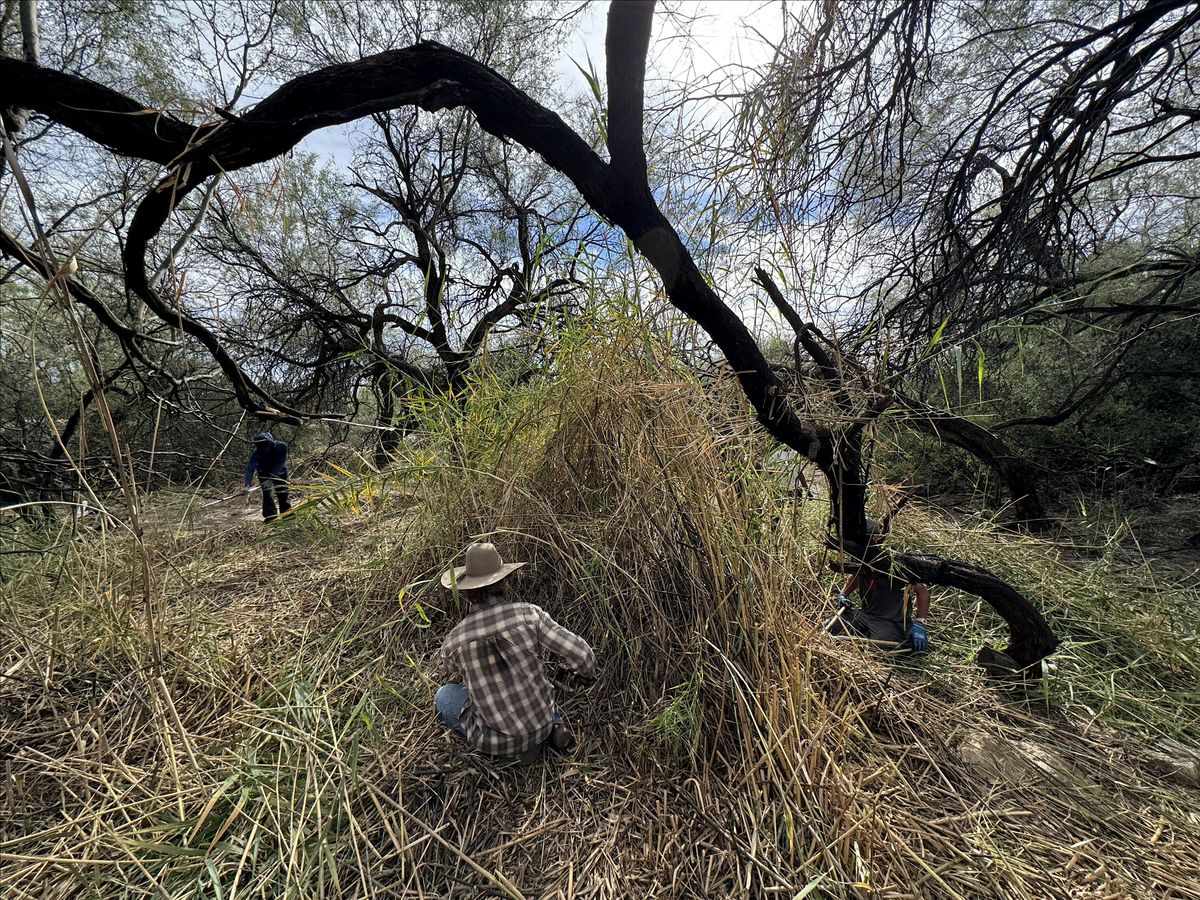 We’ll be removing Arundo (giant reed) stalks. Then, because the site is a little more remote, we’ll have to process them into smaller pieces and stack them neatly to dry out onsite. This site, Barrel Spring, is currently dry, but we’re hoping that water will return as it has at Rock Ledge Spring once the Arundo is gone. Barrel Spring has a small spring box that we're hoping to see water flow at once again!