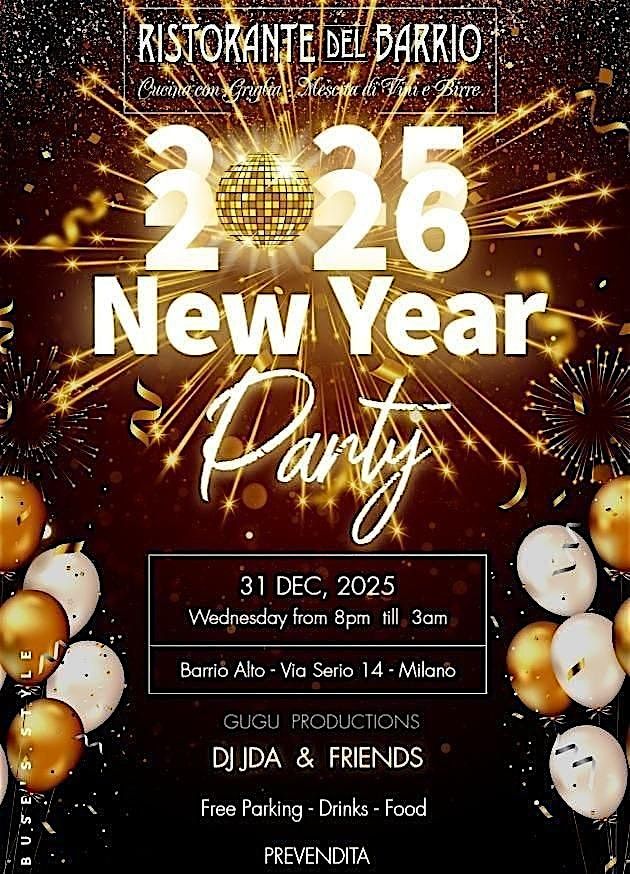 Prepara il tuo look migliore e vieni a festeggiare il Capodanno 2026 con noi al Barrio Alto Milano! Un evento in presenza dove la musica, l'atmosfera e il divertimento saranno protagonisti. Non perdere l'occasione di iniziare l'anno nuovo in grande stile, circondato da tanta energia positiva e gente fantastica. Ti aspettiamo per una notte indimenticabile!