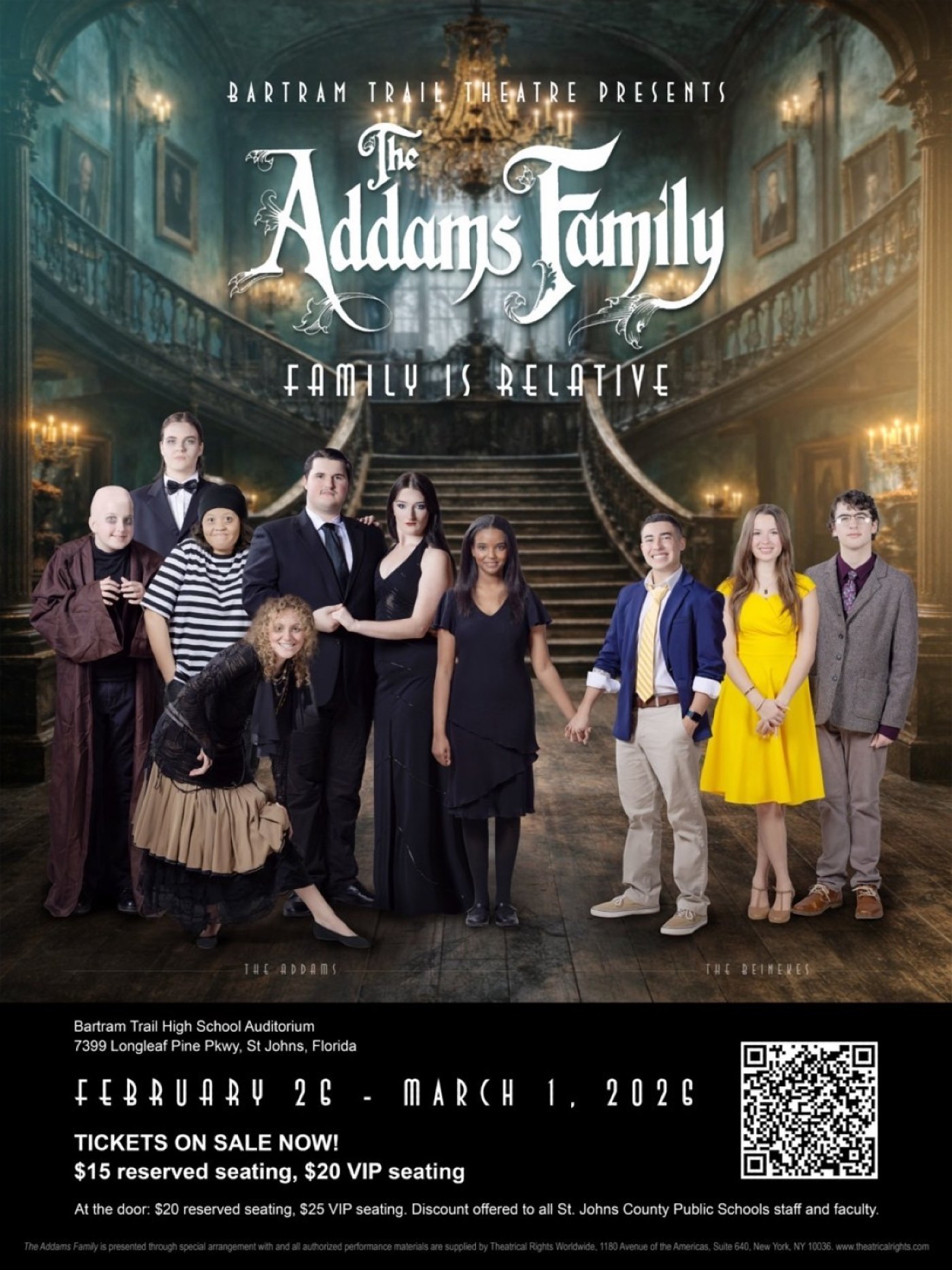 Bartram Trail High School Theatre Department proudly presents The Addams Family in four performances of this musical comedy at Bartram Trail High School from February 26th through March 1st 2026