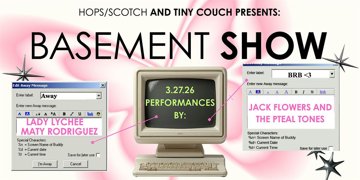 BASEMENT SHOW returns with a line up of 3 new bands. 3 hours of back to back bands to kick off your spring. Performances by Jack Flowers And The Petal Tones, Maty Rodriguez, and Lady Lychee.