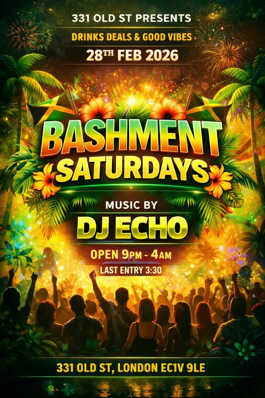 Bashment - Hip-Hop - R&B - Afrobeats @ 331 Old Street. Music by DJ Echo. Open till 4AM. Busiest night in Shoreditch. Join us for an unforgettable experience. See you at the party 🎉🎉🥳