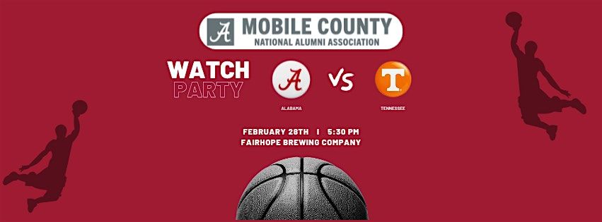 Join the Mobile County chapter of the UA-NAA for a basketbaal watch party on February 28th at 5:30 PM. Cheer on the Crimson Tide as they take on the Tennessee Volunteers alongside fellow Bama alumni and friends!