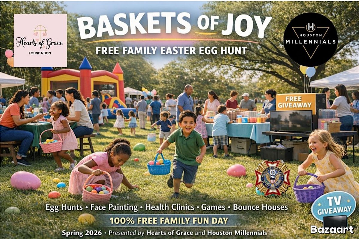 Hearts of Grace and Houston Millennials, in partnership with the VFW and Harris County Commissioner Precinct 2, proudly present Baskets of Joy: Easter Egg Hunt, a completely free family celebration built for Houston families.