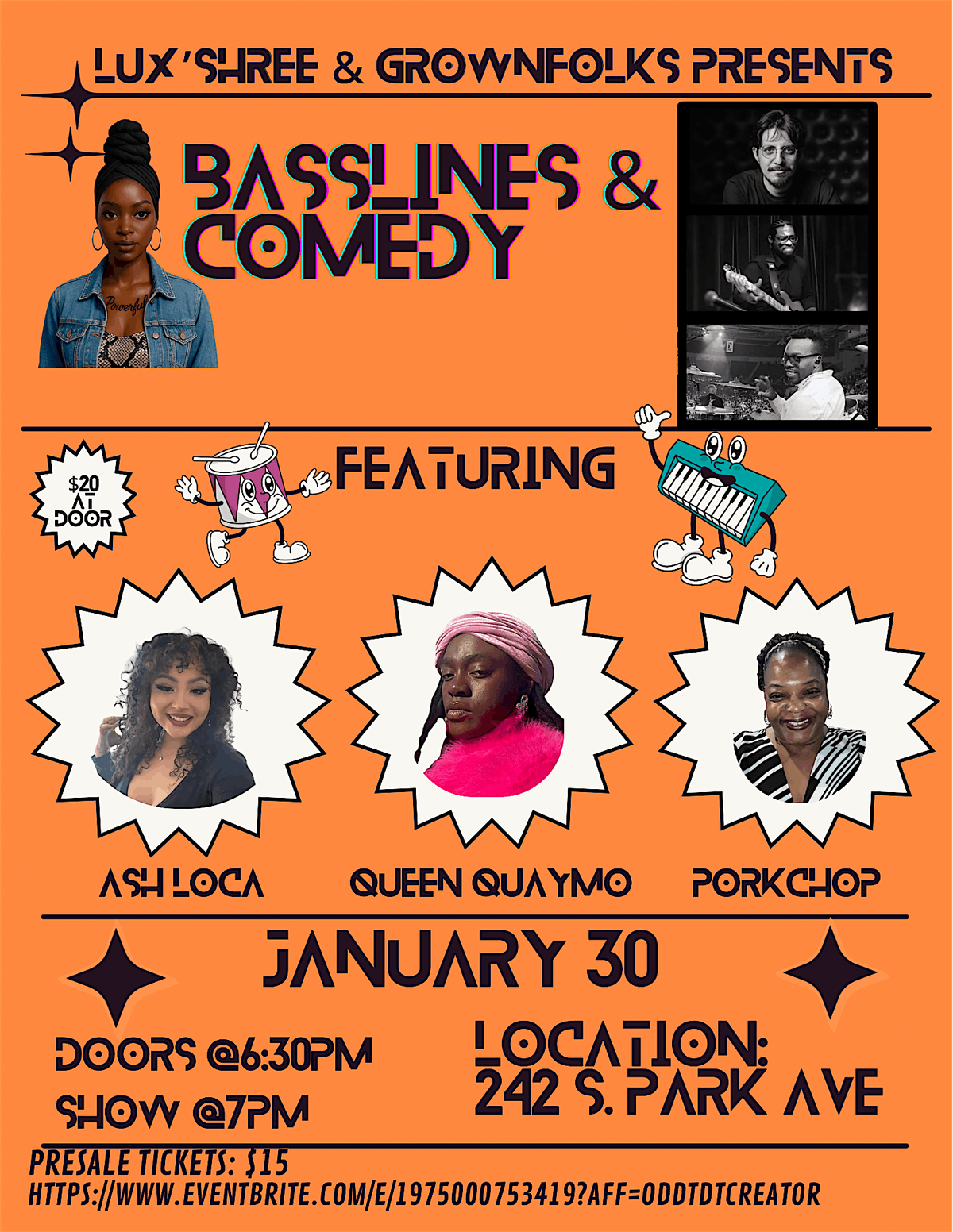 Join us for an epic night where the grooviest basslines meet the funniest jokes! This in-person event is all about good vibes, great music, and laughs that won’t quit. Whether you’re here for the tunes or the chuckles, BASSLINES & COMEDY promises a memorable time. Don’t miss out—come hang, laugh, and groove with us!
