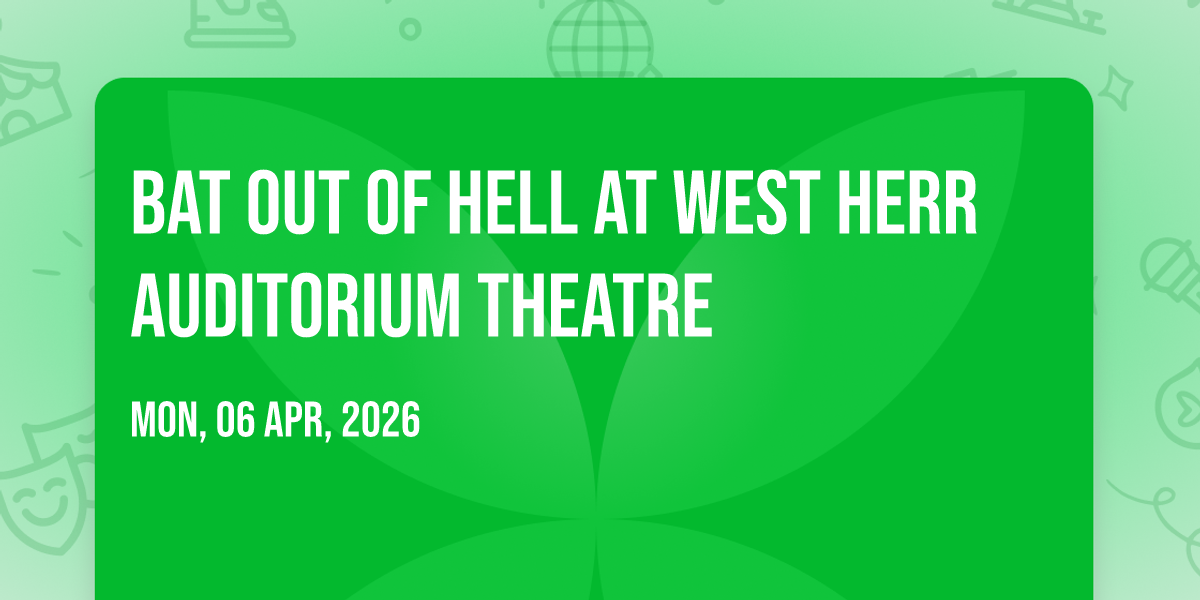 β¨ Embark on an extraordinary journey at Bat Out Of Hell at West Herr Auditorium Theatre, where every moment promises to be unforgettable! π Imagine of transforming West Herr Auditorium Theatre in the heart of Rochester, NY into a realm of endless possibilities. π Join us on April 6th, 2026 at 07:30 PM for an experience that will challenge your imagination and exceed your expectations. π― This carefully curated event combines the finest elements of entertainment, innovation, and community spirit. Whether you're an adventure seeker, culture enthusiast, or someone looking for unique experiences, this event offers something special for everyone. π Don't miss this chance to be part of something extraordinary!