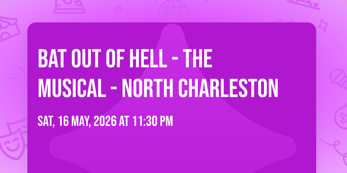📍 Location: 32.8767, -80.0093✨ Enter a world of endless possibilities at Bat Out Of Hell - The Musical - North Charleston, where every moment tells a story! 🏛️ The stunning North Charleston Performing Arts Center in vibrant North Charleston, SC transforms into a realm of wonder on May 16th, 2026 at 11:30 PM. 🌟 They have crafted an experience that goes beyond the ordinary, combining elements of surprise, delight, and pure entertainment. Every detail has been thoughtfully considered to ensure your journey with us is nothing short of extraordinary. 🎯 Join fellow adventure seekers and memory makers in this celebration of imagination and innovation. 🎊 Reserve your spot today and be part of something truly special!