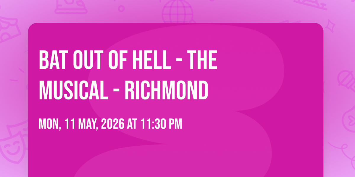 π Location: 37.5413, -77.4365π Be part of history at Bat Out Of Hell - The Musical - Richmond, an extraordinary gathering that will captivate your imagination! ποΈ The prestigious Carpenter Theatre at Dominion Energy Center in Richmond, VA sets the stage for an unforgettable experience on May 11th, 2026 at 11:30 PM. β¨ They are bringing together the finest elements of entertainment and innovation to create moments that will take your breath away. From the moment you arrive, you'll be immersed in an atmosphere of wonder and excitement. π― This carefully planned event ensures every guest experiences something truly special. π Early booking is recommended for this must-attend event of the season!