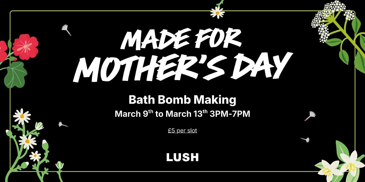 Looking for some hands-on Mother's Day Joy? Come along and make your own hand-made bath bomb with us, ready to gift on Mother’s Day.About this Event
