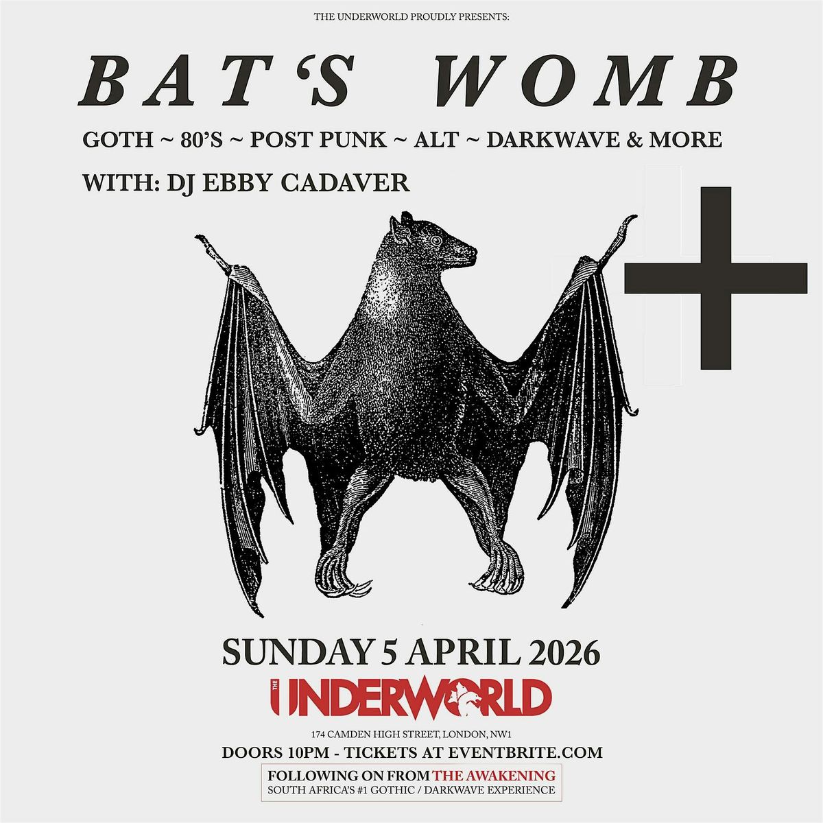 Bats Womb ~ Goth Club Night at The Underworld Camden ~ Sunday 5th April 2026 ~ Doors 10pm ~ Late