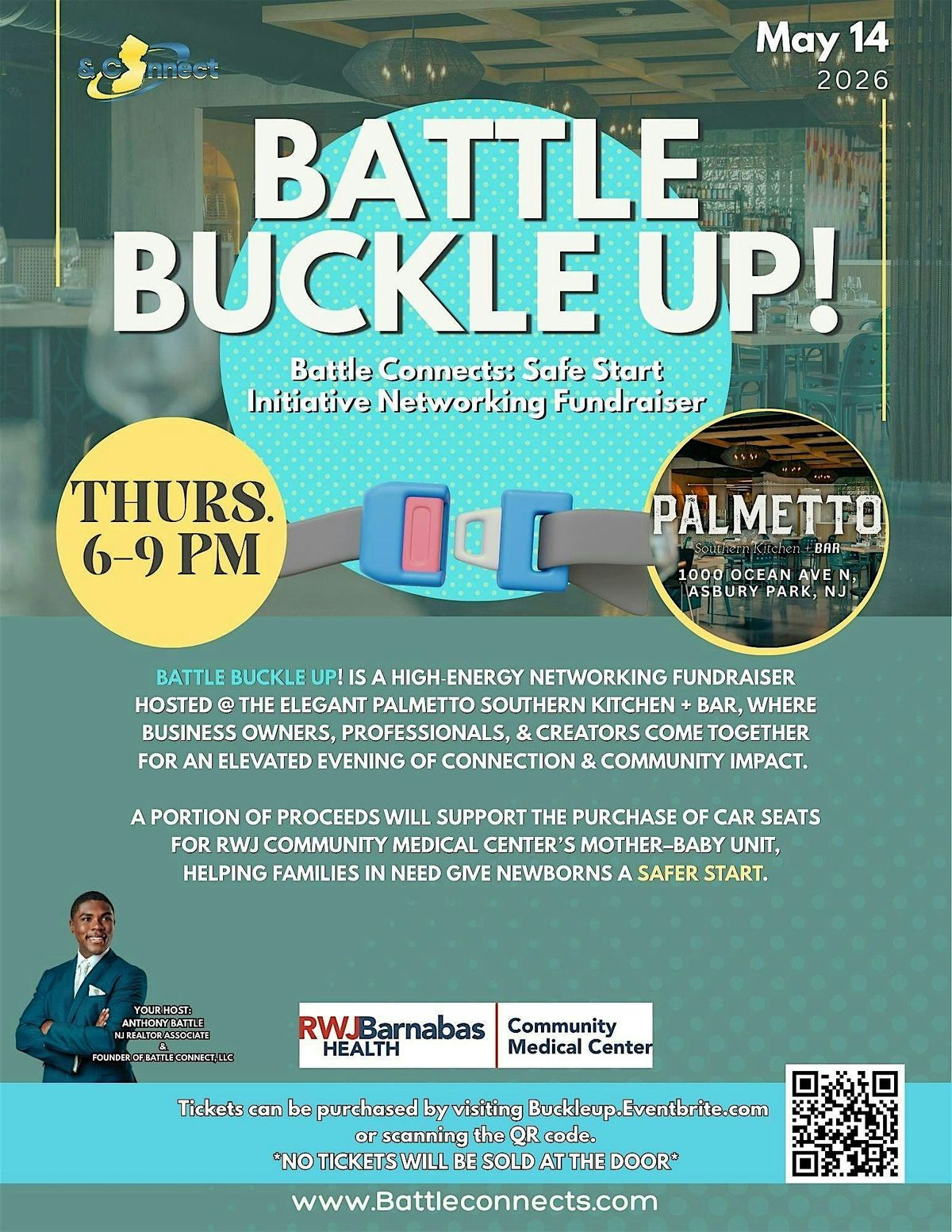 Battle Buckle Up is Battle Connects’ networking fundraiser with a purpose — bringing people, professionals, and businesses together to connect and give back to the community. Part of every ticket and sponsorship helps buy and donate car seats to the Mother‑Baby Unit at RWJ Community Medical Center, turning conversation into real impact.