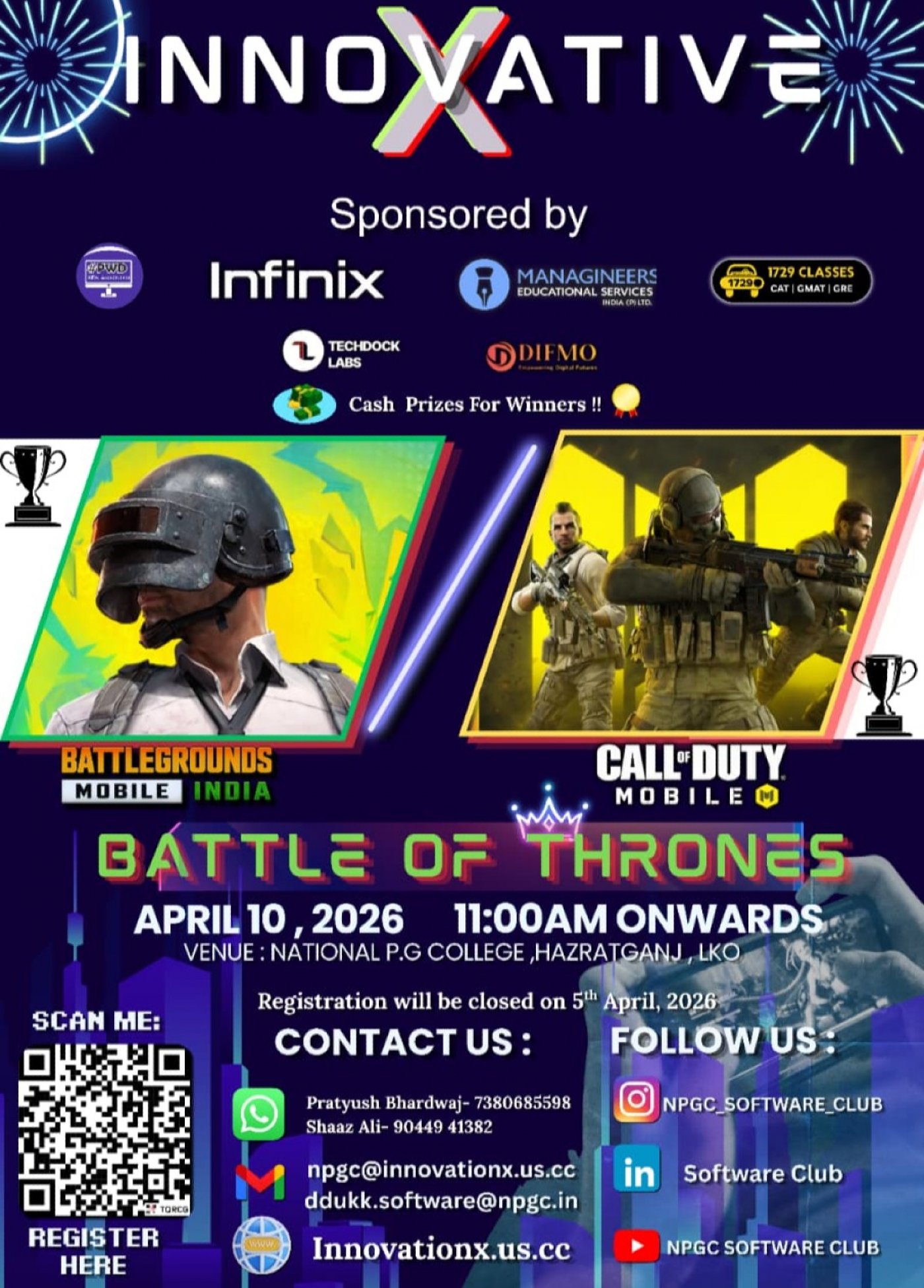 Join us for a legendary clash in the gaming arena at the Battle of Thrones hosted by NPGC Software Club! 🎮