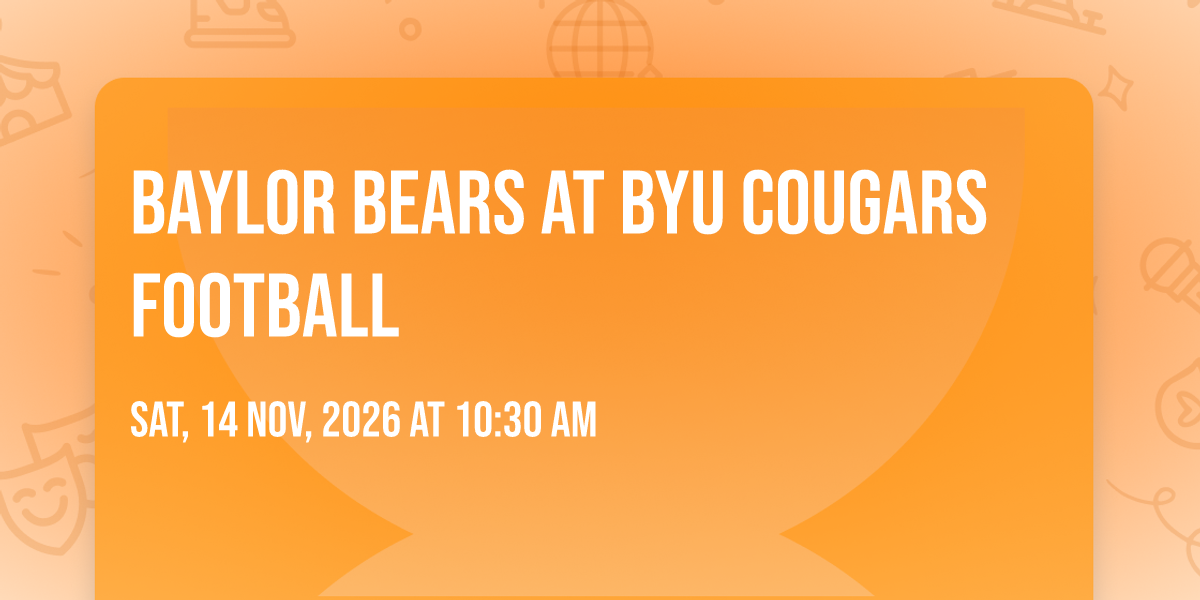 π Location: 40.2566, -111.654π Step into a world of wonder at Baylor Bears at BYU Cougars Football, where extraordinary moments await! ποΈ Located at LaVell Edwards Stadium in dynamic Provo, UT, this event will become the talk of the town. π Join us on November 14th, 2026 at 10:30 AM for a celebration that defies the ordinary. β¨ This curated experience brings together the best of entertainment, culture, and community spirit. Every detail has been thoughtfully planned to ensure an unforgettable experience for all our guests. π― Take advantage of this opportunity to be part of something special. π Early registration is recommended as space is limited!