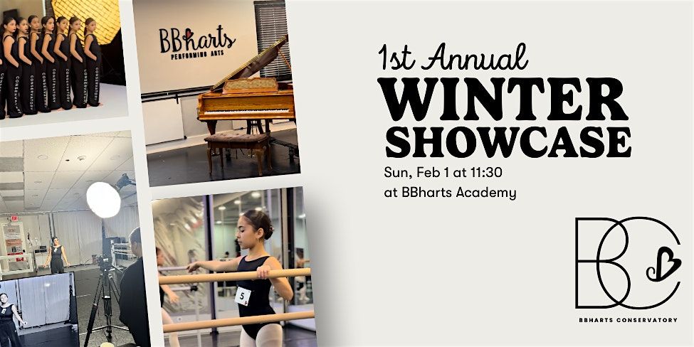 Welcome to BBharts Conservatory 1st Annual Winter Showcase at BBharts Performing Arts! Get ready for an afternoon filled with amazing performances by talented artists. Join us on February 1, 2026 at 11:30 AM (Eastern Time) for a "speakeasy like" experience. Don't miss out on this opportunity to support our conservatory students and enjoy a day of creativity and inspiration.