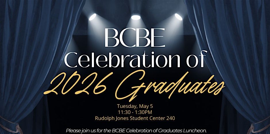 Celebrate BCBE's Spring 2026 graduates! Join us May 5, 2025, at 11:30 AM in the Rudolph Jones Student Center, room 240. Honor achievements and future success. Graduates are invited to bring 2 guests with them.