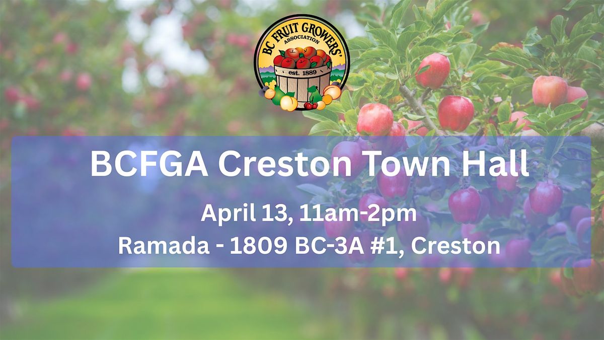 The BC Fruit Growers’ Association will be visiting Creston on April 13, 2026 to hear directly from growers in the region. April 13, 11am-2pmAbout this Event