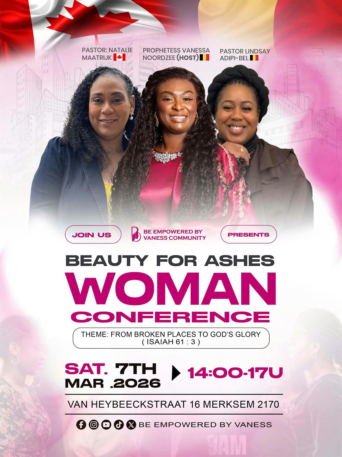 Een Vrouwen conferentie van bekrachtiging, goddelijke transformatie en genezing. De Vrouw die uit as herrijst naar Gods Heerlijkheid.