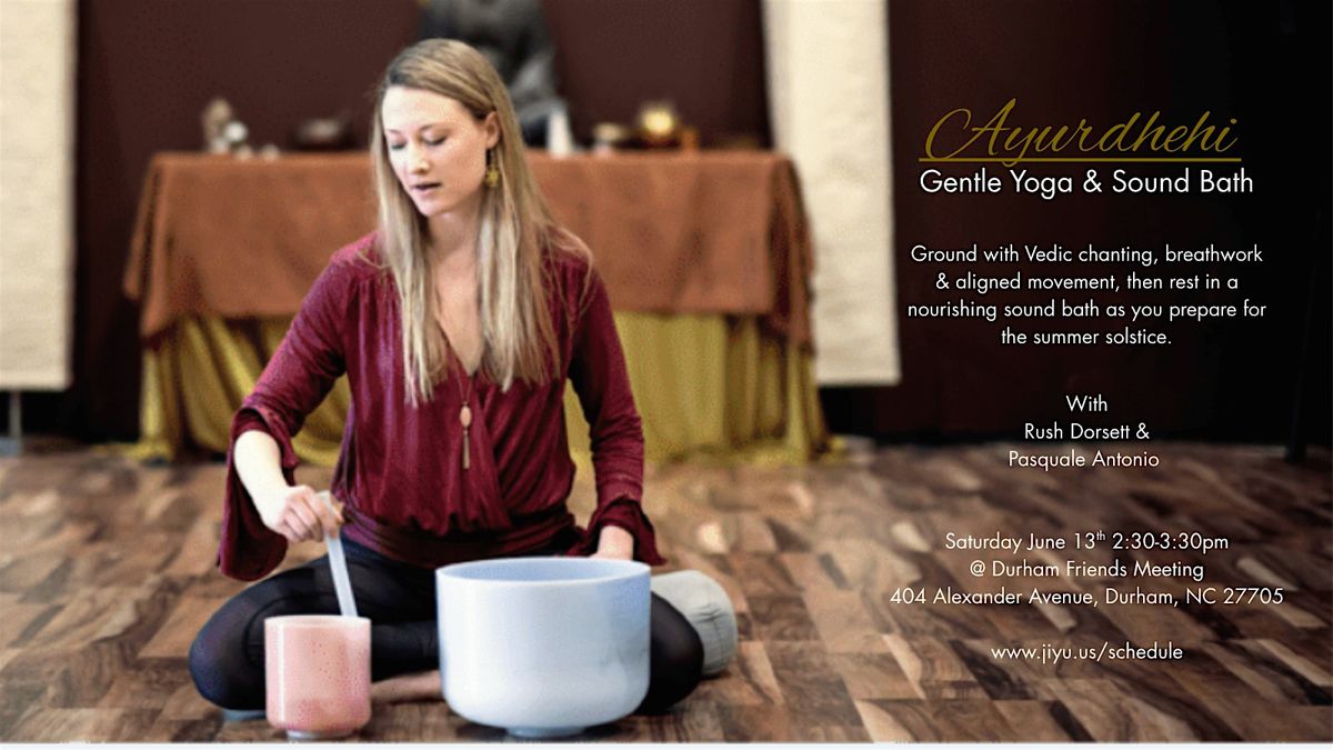 A gentle yoga practice centered on the mantra Ayurdevi “may I be nourished”, followed by a deeply restorative sound bath with Rush Dorsett.
