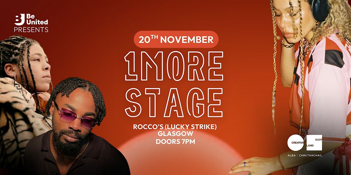 "Be United Presents: One More Stage" - a live music event, featuring some of Scotland’s most exciting up-and-coming musical acts.