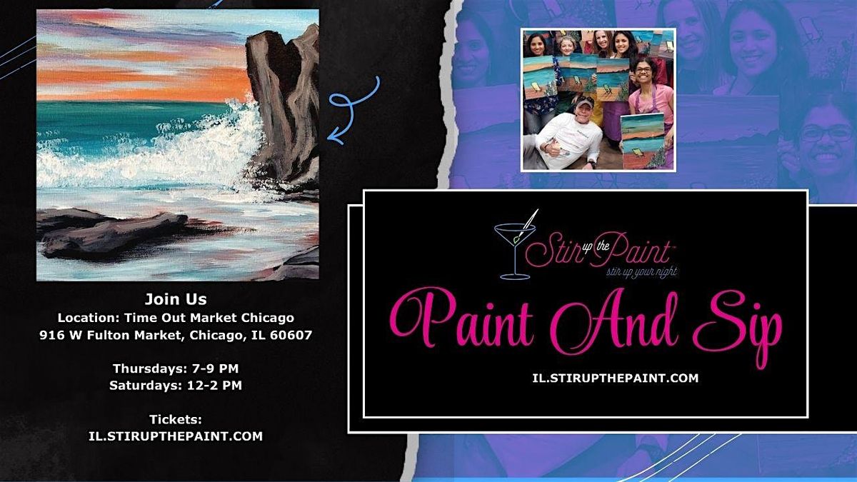 “Beach-Rocks-Sunset” Sip and Paint Saturday 12:00 p.m. at Timeout Market