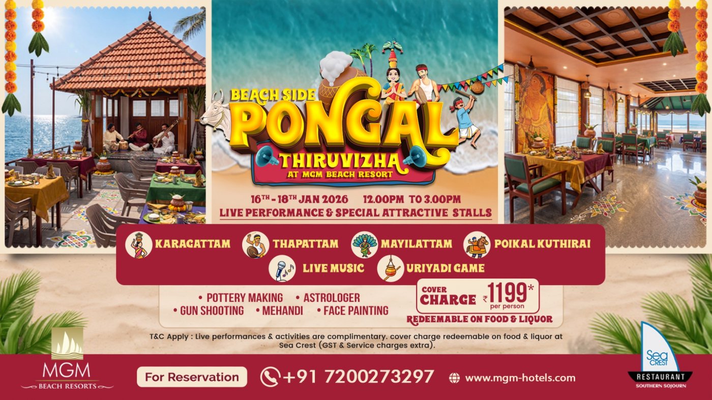 Bring your family together and celebrate Pongal by the beach with culture, food, and fun at MGM Beach Resort. A perfect festive outing for the entire family!