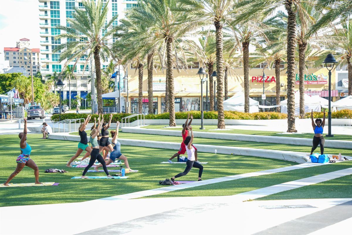 Experience the perfect blend of movement and mindfulness at Beachside Yoga, held every 3rd Sunday of the month as part of the Las Olas Oceanside Park Marketplace. This free yoga class invites you to connect with your body and the soothing sounds of the ocean in a serene outdoor setting.