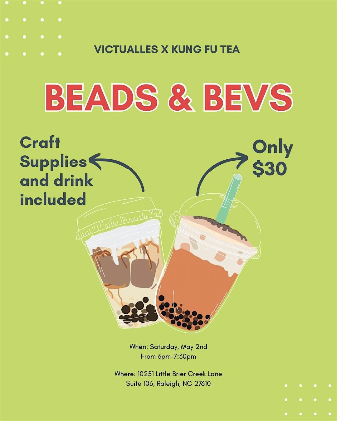 Beads and Boba! Make jewelry and accessories while sipping on coffee or tea.