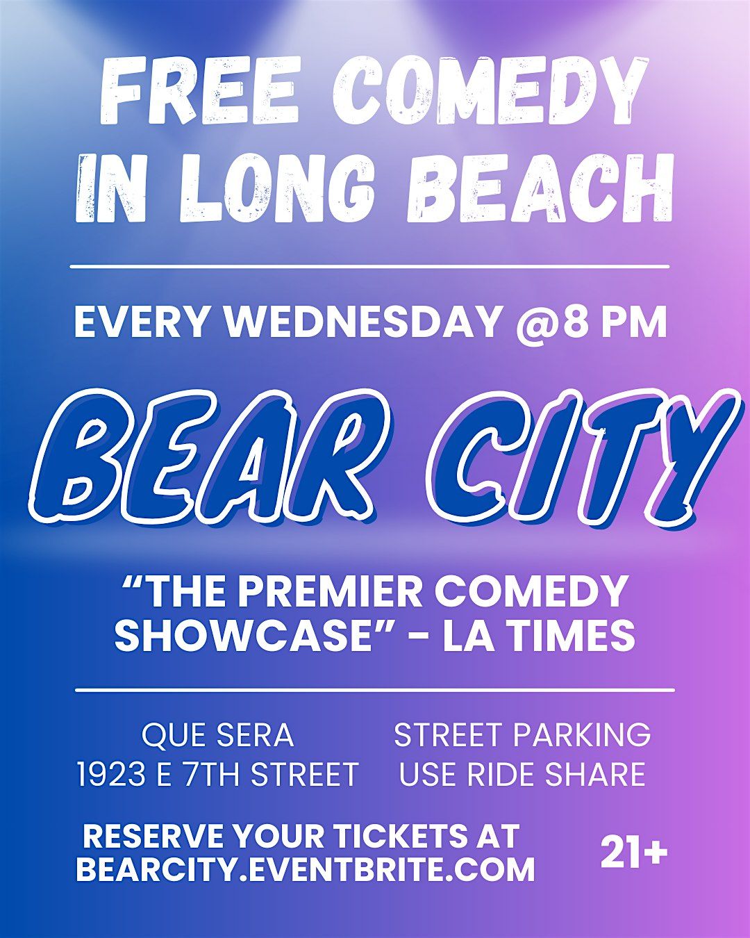 Bear City brings the top comedians from LA to Long Beach EVERY. DAMN. WEDNESDAY at Que Sera (Best Nightclub, OC Weekly). Featuring talent from Netflix, HBO, SNL + surprise guests! So stop scrolling thru memes and come LOL IRL.