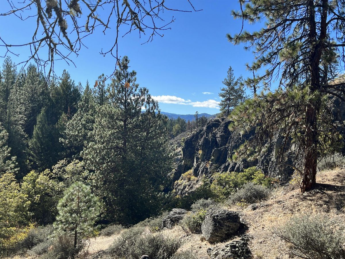 Starting near the future wildlife crossing on I-5 near the border of California, we will walk through the Mariposa Botanical Area to get to a striking canyon at Bear Gulch Preserve, an invitation-only access preserve. There will be an optional hike from there to peek at Chocolate Falls on BLM Land. Our guides will be Bird Biologist, Frank Lospalluto, and Botanist and Stewardship Director, Kristi Mergenthaler, so there will be birding and flower-admiring along the way. However, they will not be the day’s primary focus.