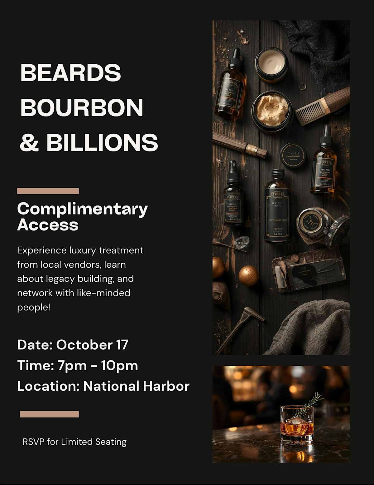On Friday, October 17th, 2025, enjoy an exclusive experience at National Harbor — Beards, Bourbon, and Billions. This groundbreaking event blends ambition, luxury, and legacy into one unforgettable evening.