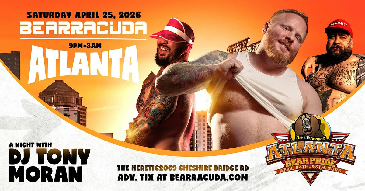 Join 1000+ guys from all over for the Atlanta Bear Pride Saturday main event! Party with us on the dance floor and on the patio on Saturday, April 25th, 2026! Tony Moran brings the beats until LATE and our hot dancers shake it for you all night! Hosted by Matt Bearracuda and JP Hardy