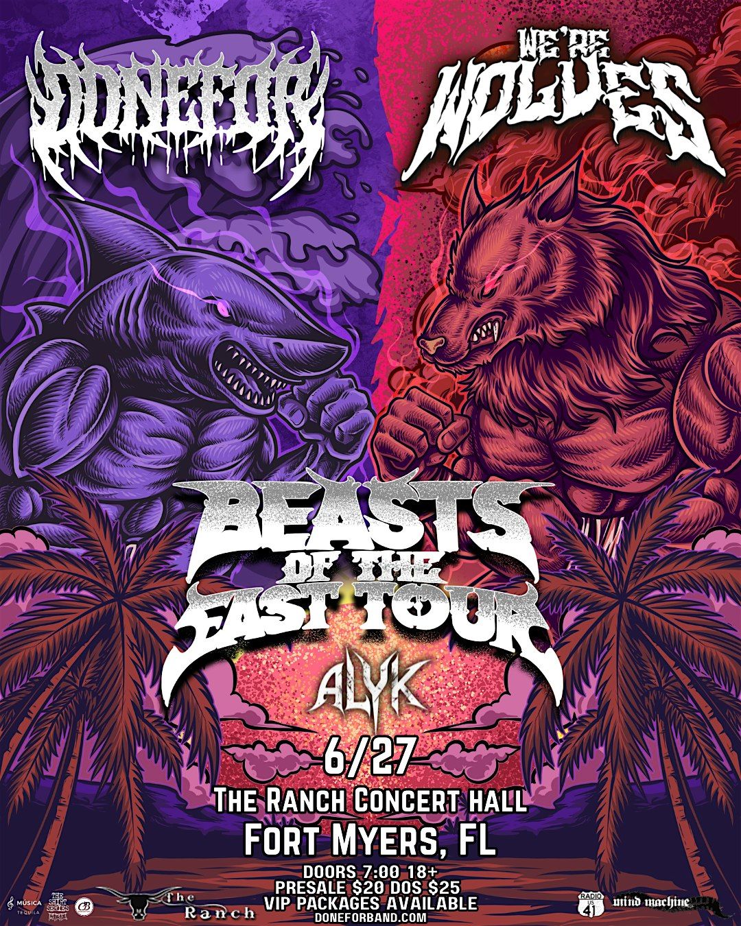 SWFL's Premiere Metal band DONEFOR returns with to the Sunshine State with WE'RE WOLVES to finish their national tour in FORT MYERS, FLORIDA 06/27
