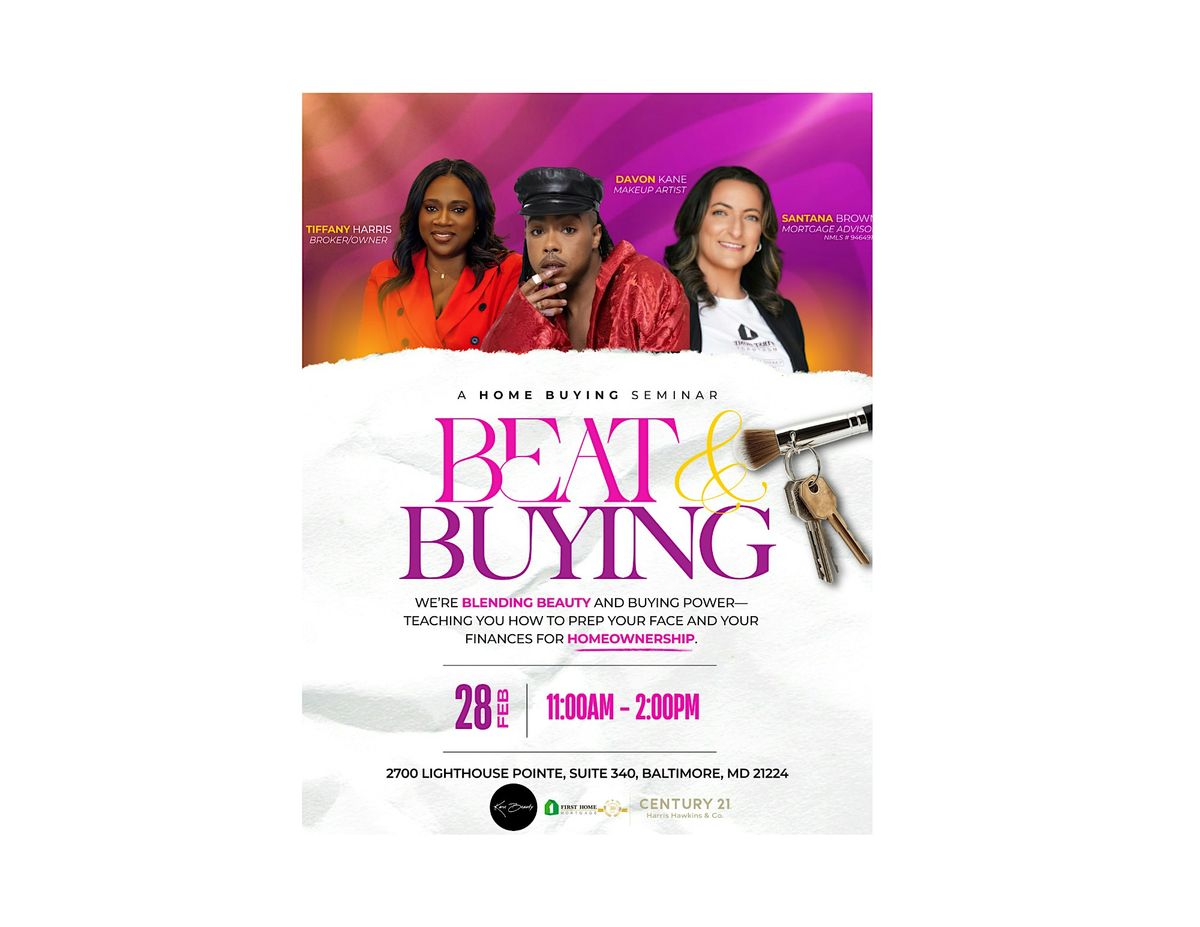 Join us in person for a unique experience where makeup meets homebuying! Whether you're here to learn to beat your face by the best or learn how to master your finances for homebuying! Bring your friends for this immersive experience. Don’t miss out on an educational and great event at Beat & Buying!