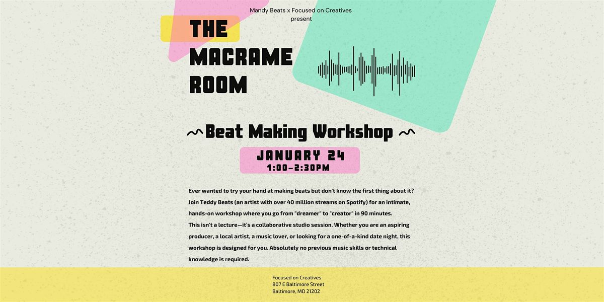Ever wanted to try your hand at making beats but don't know the first thing about it? Join Teddy Beats for an intimate, hands-on workshop where you go from "dreamer" to "creator" in 90 minutes.