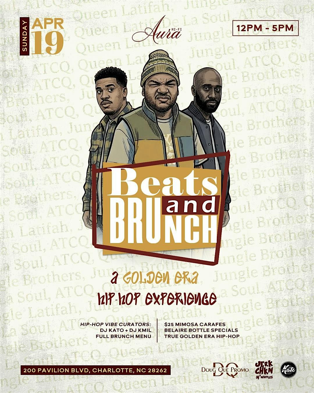 Step into a fresh, one-of-a-kind brunch experience celebrating golden era Hip-hop music and culture Sunday, April 19 at Aura.Hifi!