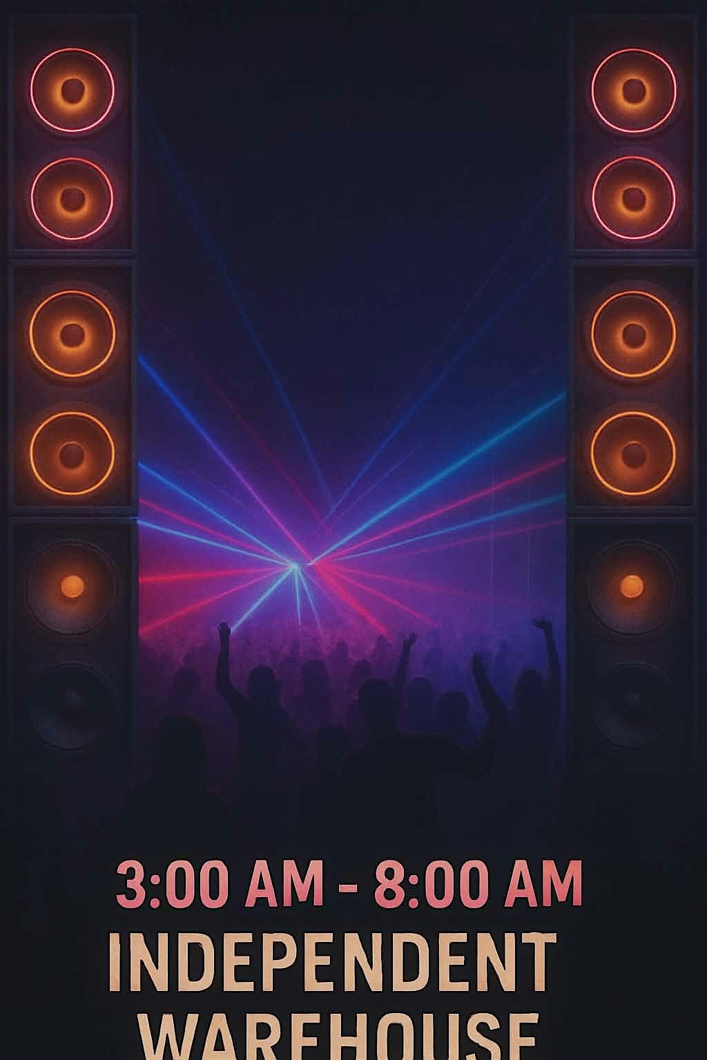 This is a late-night warehouse rave — raw, loud, and built for people who don’t leave early.