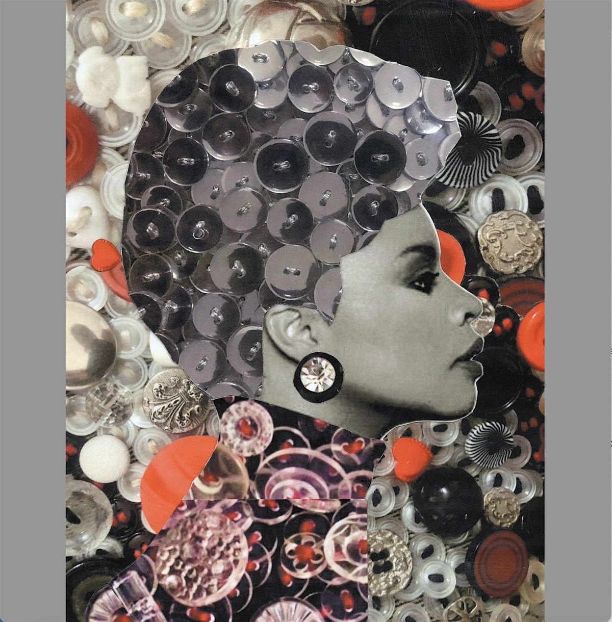 Anchoring the exhibition are McCall’s music-themed collages. McCall created each one by hand using his personal archival photos and papers, along with images from his button-embellished artwork. Once completed, the works were scanned and printed on metal for luminosity. Divided into two categories, the collages pull from his Diva Worship and REWIND: MEMORIES ON REPEAT series. The former features portraits of both famous and underrepresented divas–of all gender identities–whose music inspired, empowered, and captivated McCall, particularly during his coming-of-age in the 1970s LGBTQ+ community.