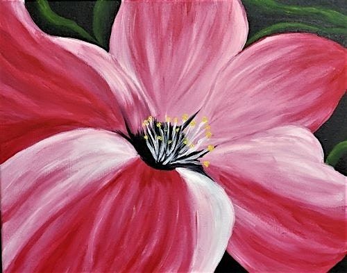 Beautiful Pink Hibiscus paint and sip painting event.
