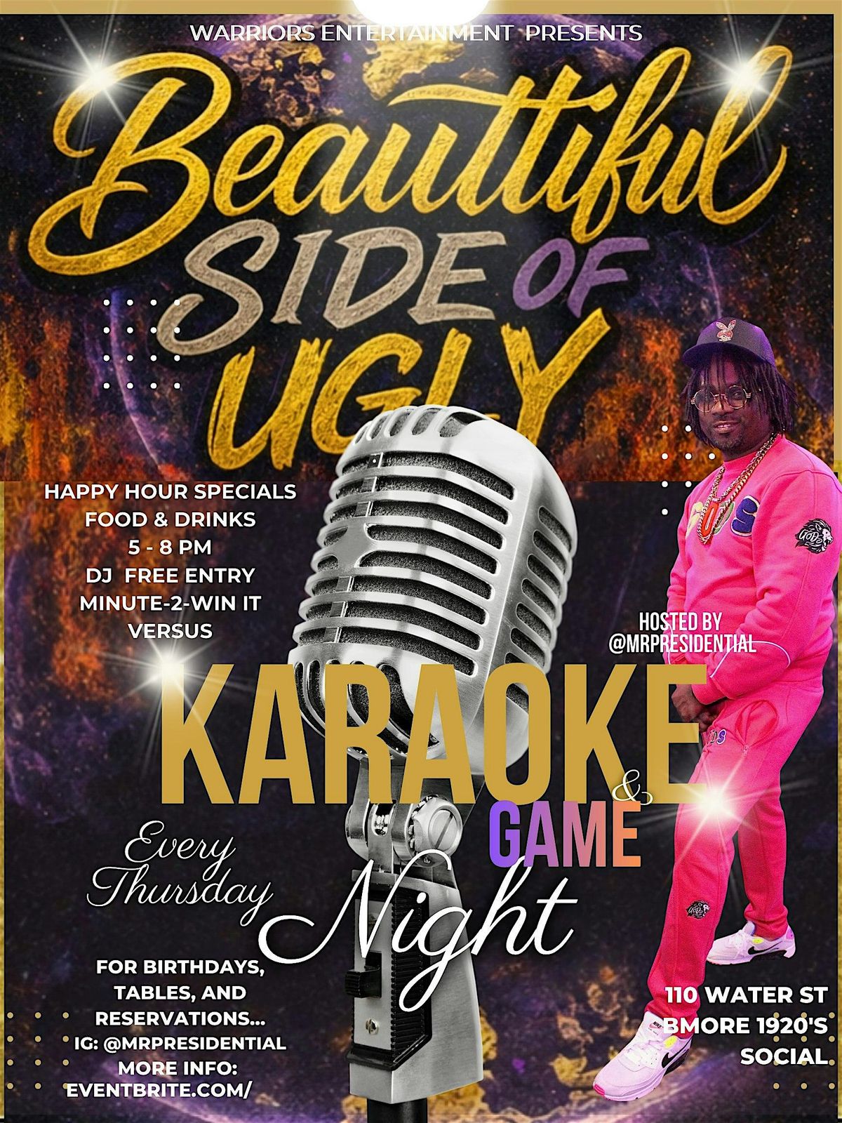 Welcome to #BeautifulSideOfUGLY Karaoke & Game Night — Baltimore’s new weekly Thursday vibe at 1920s Bmore Social, a Black-owned restaurant in the heart of downtown.