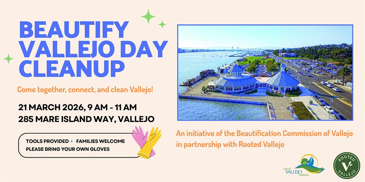 Join your neighbors and come out for the first Beautify Vallejo Day, an initiative of the Vallejo Beautification Commission. Plan for a morning of enjoying our beautiful waterfront, getting to know your neighbors and fellow Vallejo residents, and helping to clean up one of our city's many incredible open spaces.