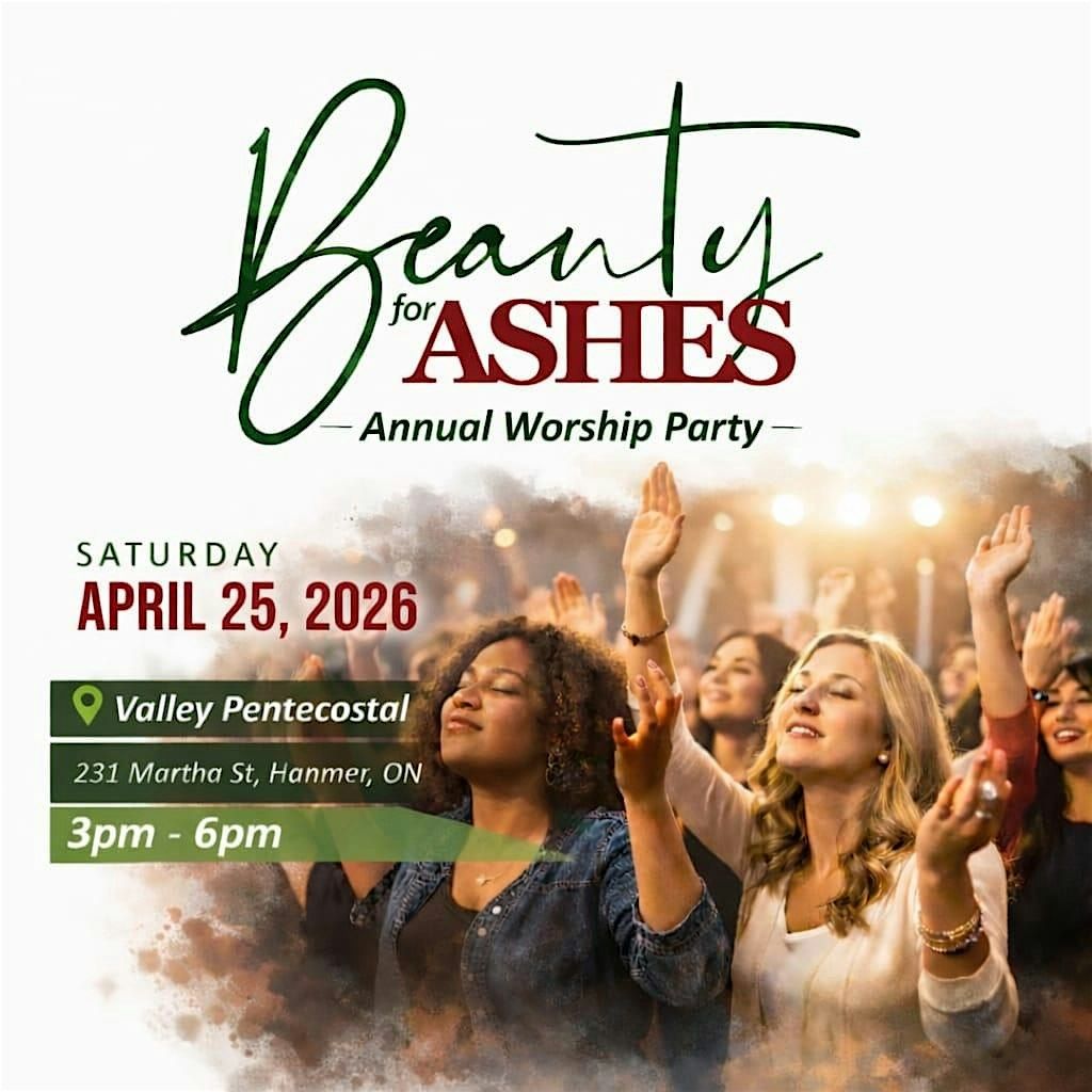 Beauty for Ashes, an uplifting annual worship party designed to create space for heartfelt praise, spiritual renewal, and joyful celebration in the presence of God.