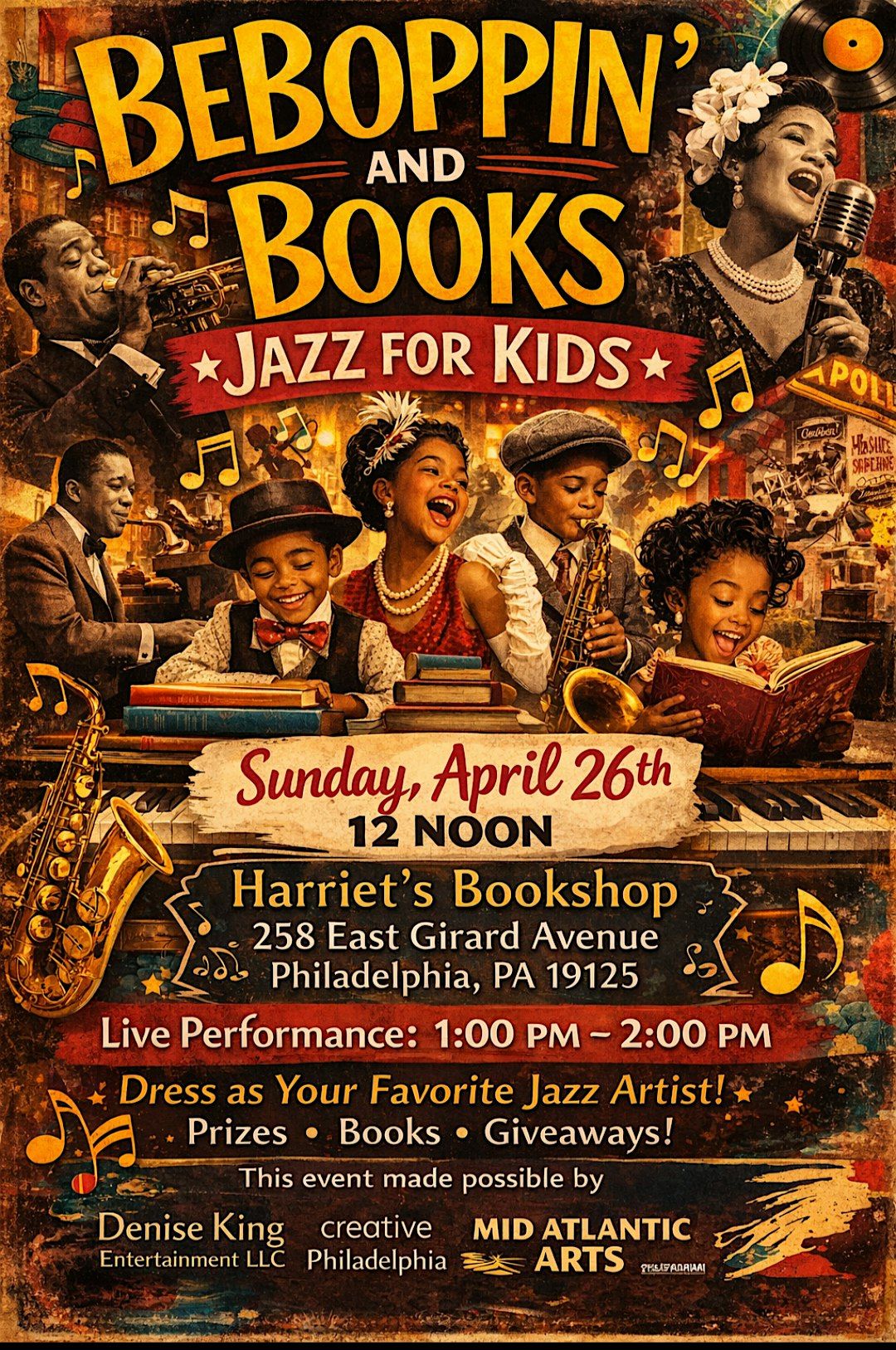 A celebration of Jazz during the Harlem Renaissance and beyond. Dress as your favorite Jazz musician or singer. Prize for best costumes