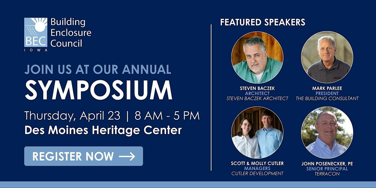 The Building Enclosure Council of Iowa is proud to present the 2026 BEC-Iowa Symposium. The Symposium includes a distinguished panel of speakers to discuss building science and enclosures. This will be an in-person event only, and attendees can enter a raffle to win prizes (winners will be announced at the end of the symposium).