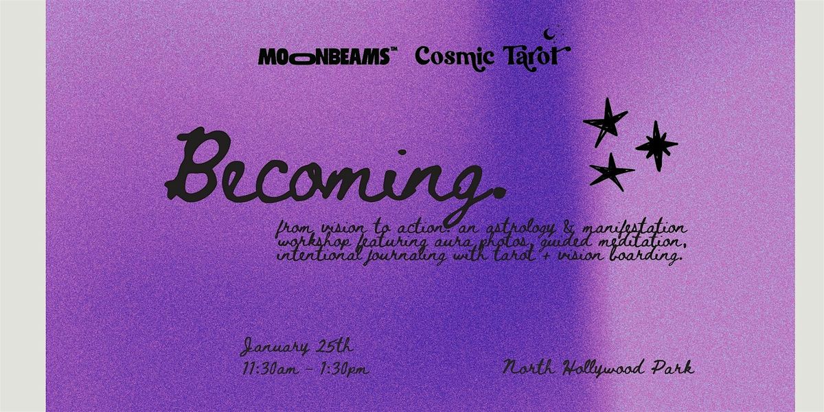 moonbeams™ and Cosmic Tarot Presents...Becoming: An Astrology + Manifestation Workshop featuring aura photos, a guided meditation, collective oracle card reading, intentional journaling with tarot, and vision boarding.