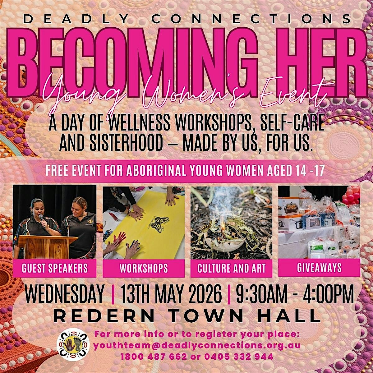 Free event for Aboriginal young women aged 14-17. A day of wellness workshops, cultural activities and sisterhood. Lunch provided.
