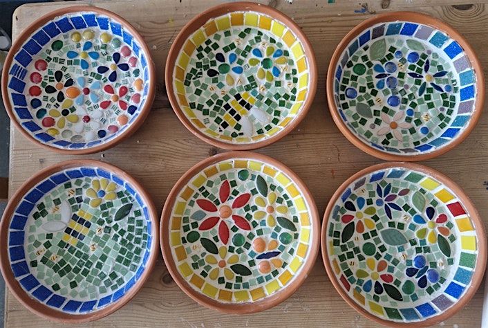 Come along and create your own mosaic bee bath from mosaic tiles, mosaic petals, cabochons, mosaic gems and mini bees. You will be shown how to create your own design and then use the different mosaic tiles to create it.