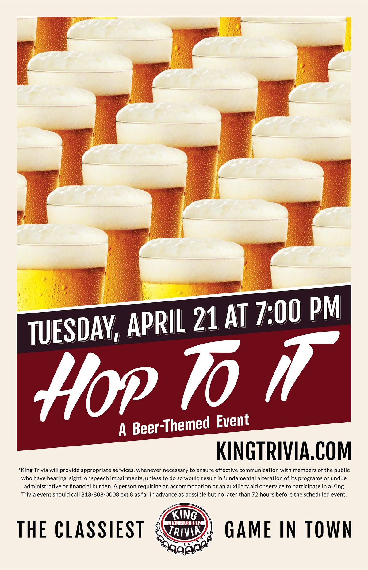 Get ready for a night full of fun and frothy facts! Join us in person at Anchor Bar Leesburg for a super chill beer themed trivia night. Whether you're a beer buff or just in it for laughs and good vibes, this is the perfect way to test your knowledge and enjoy some great brews. Bring your friends, make a team, and let's see who's the ultimate beer brainiac!